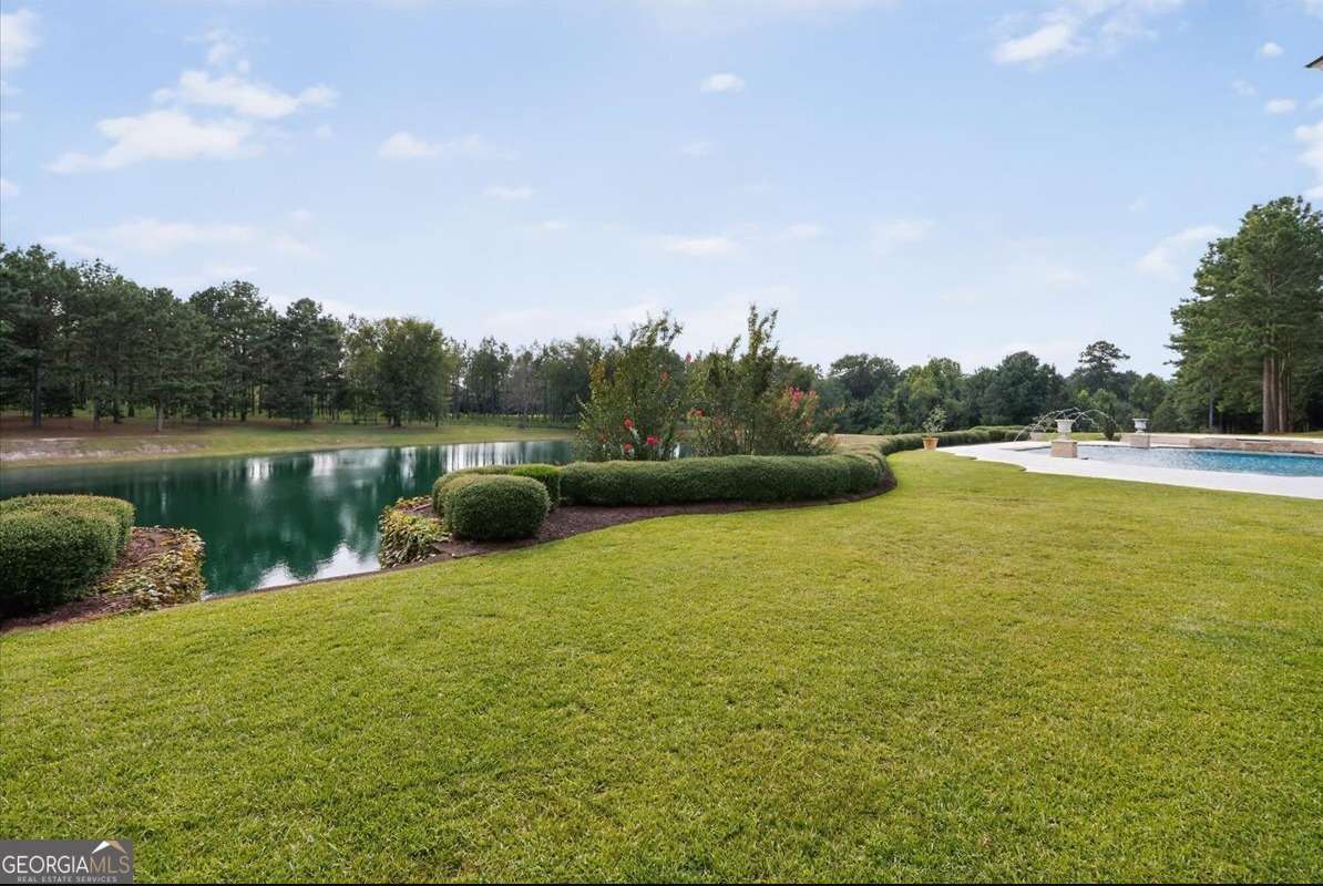 One of the most distinctive features of this estate is its ability to deliver a resort-level experience without ever leaving home. The outdoor setting is anchored by a beautiful 2-acre stocked pond, ideal for quiet mornings, peaceful views, or light recreational enjoyment. Nearby, a luxurious pool is designed for both relaxation and entertainment. The pool area includes its own full bath and is equipped with surround sound, creating the perfect environment for spending long, enjoyable days outdoors.