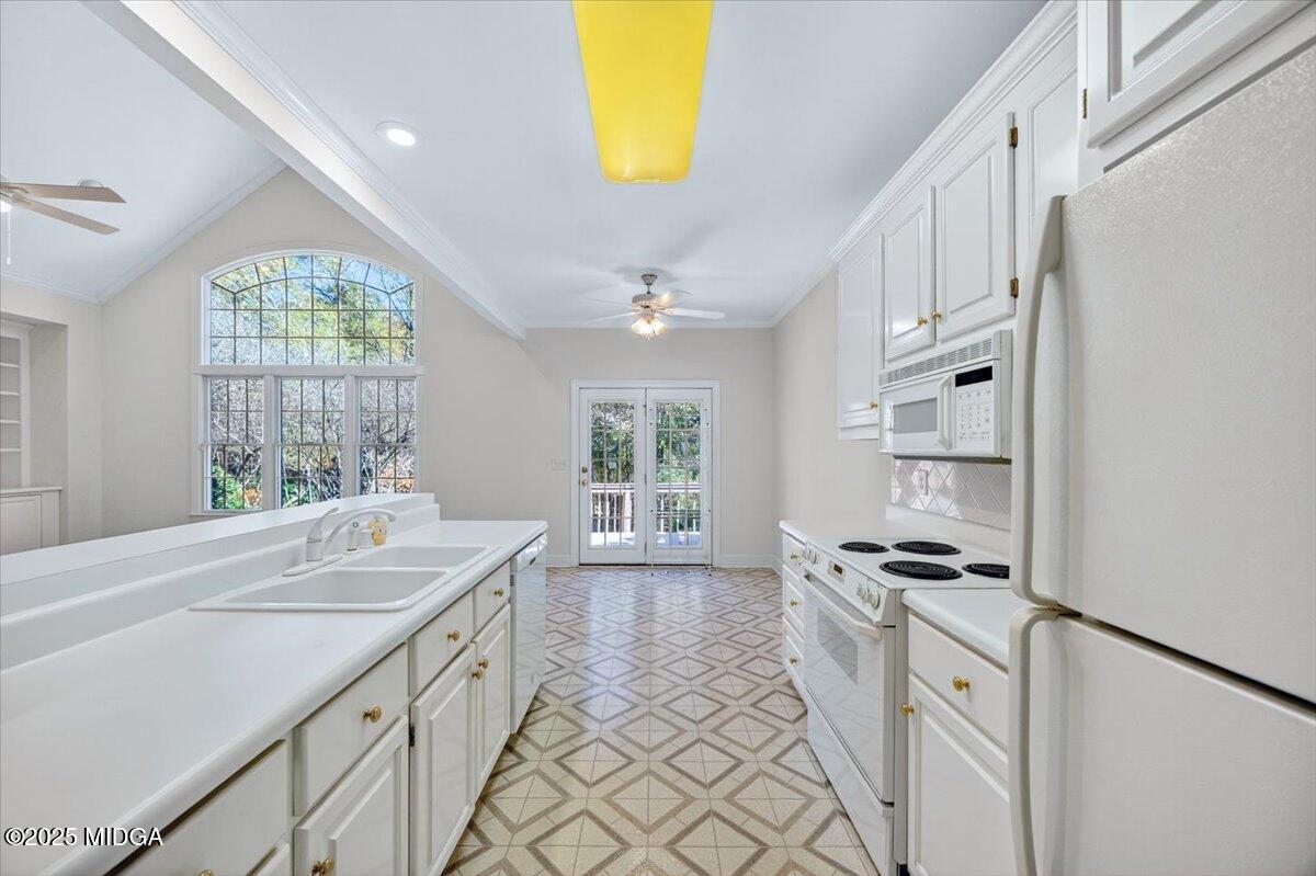 The kitchen is well-equipped with a refrigerator, built-in electric oven, dishwasher, and disposal, along with generous cabinetry and counter space. Its connection to the den creates an open, inviting atmosphere ideal for gatherings or informal everyday living.