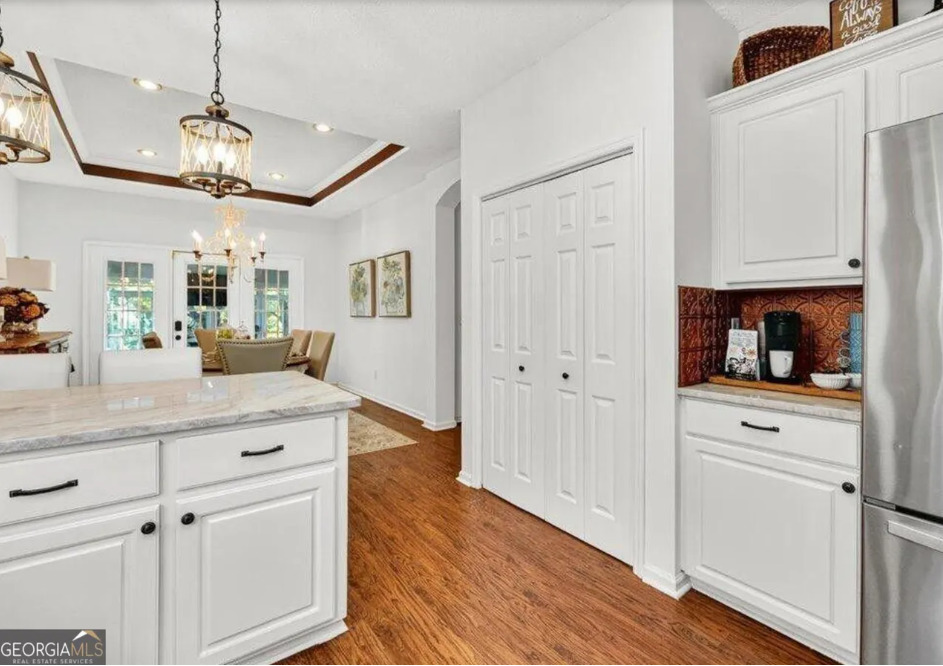 - Interior features, bookcases, double vanity, high ceilings, tray ceilings, walk in closets