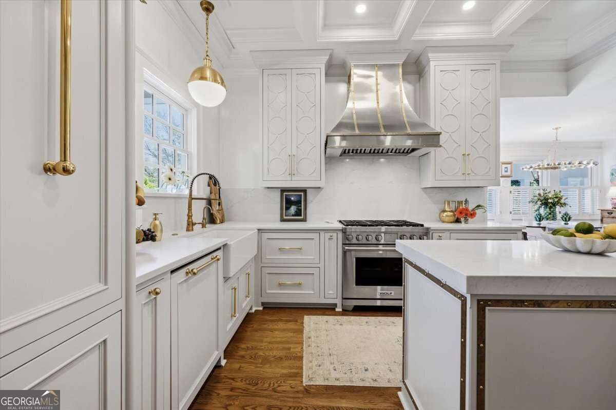 The reimagined kitchen serves as the centerpiece of the home—elevated by a custom wet bar, ideal for hosting gatherings that flow effortlessly from one space to the next. Multiple living areas, including a den and formal foyer, offer versatility while maintaining a cohesive, upscale aesthetic.