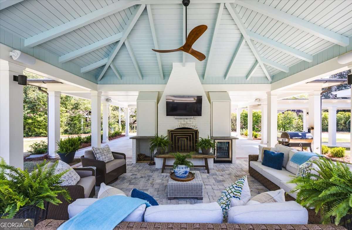 Set on 1.6 acres, the grounds have been curated to feel both expansive and private. A sparkling in-ground pool, outdoor fireplace, and sweeping veranda create an environment designed for year-round enjoyment. Whether hosting elegant evening gatherings or enjoying quiet afternoons, this outdoor setting rivals that of luxury resort properties.
